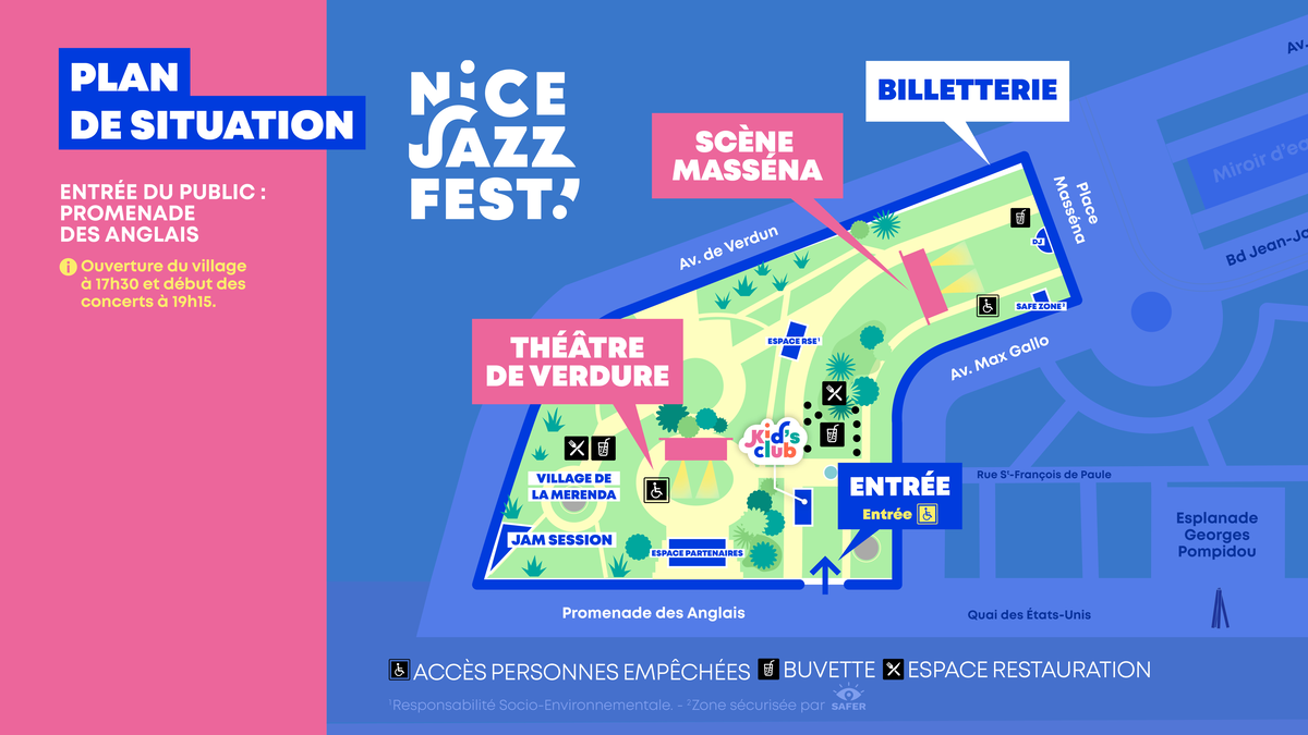 Deux zones de stationnement éphémères vont être installées sur le terreplein central de la Promenade des Anglais devant l’entrée du Nice Jazz Fest !